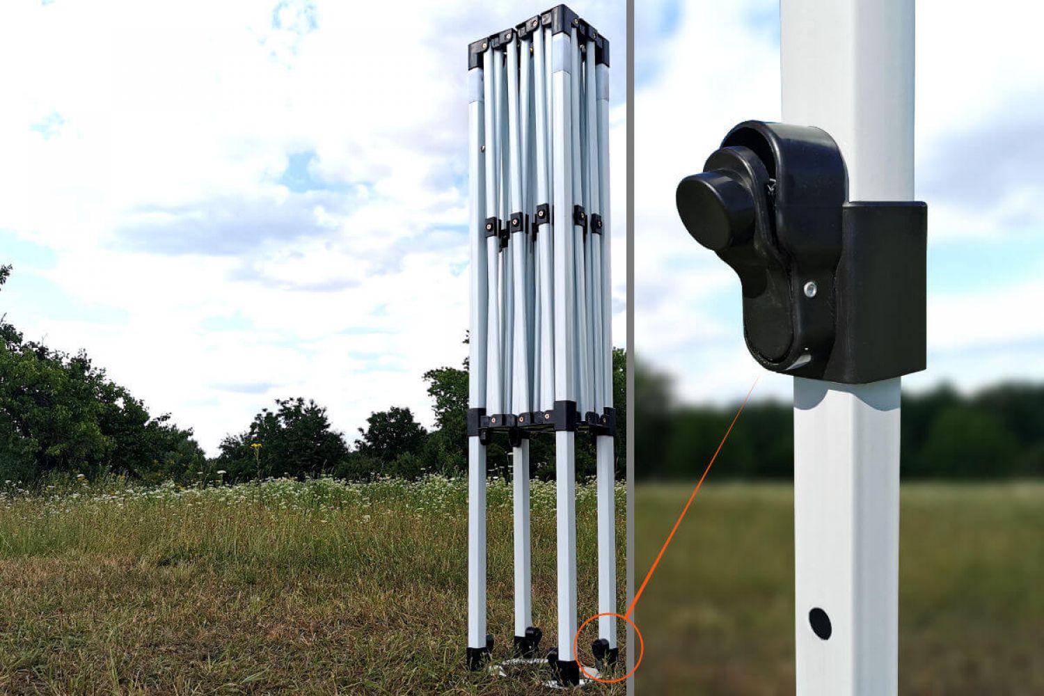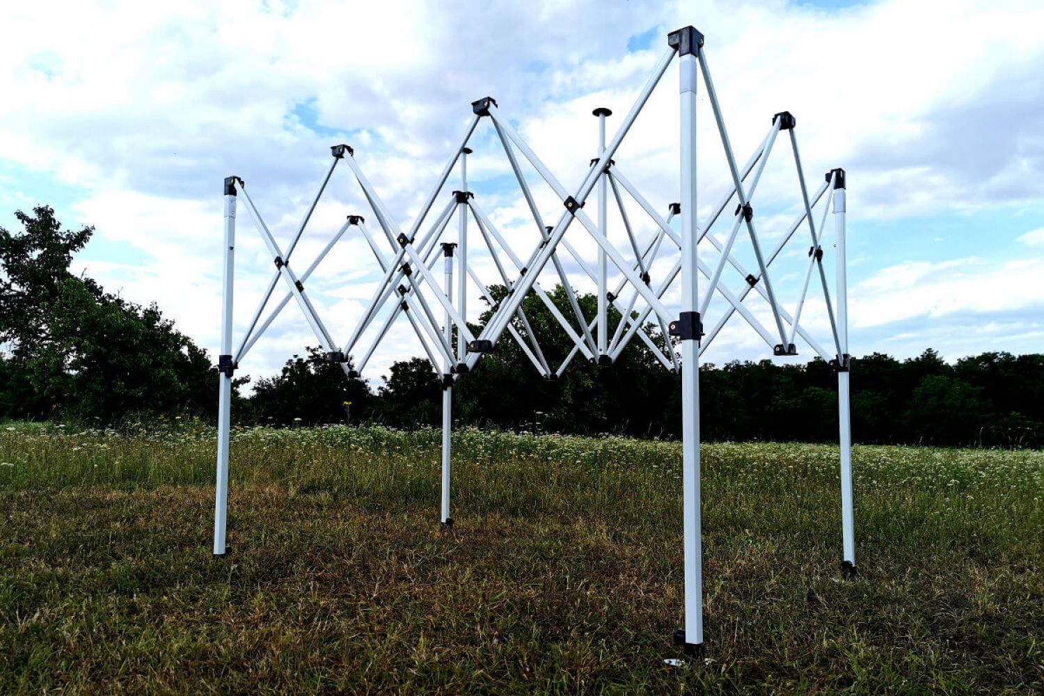 Svarbu greitai maketuoti ir sutaupyti laiko. Dėl automatinės išlankstymo sistemos jums nebereikės jokių įrankių. Keli žingsniai ir palapinė paruošta prekėms parduoti. Kiekviena dalis yra keičiama dėl varžtų jungčių. Tai įvertinsite, jei bus pažeista konstrukcija, nereikės pirkti naujos, užtenka atsarginės dalies. Dalis netgi pirmus metus teikiame nemokamai.