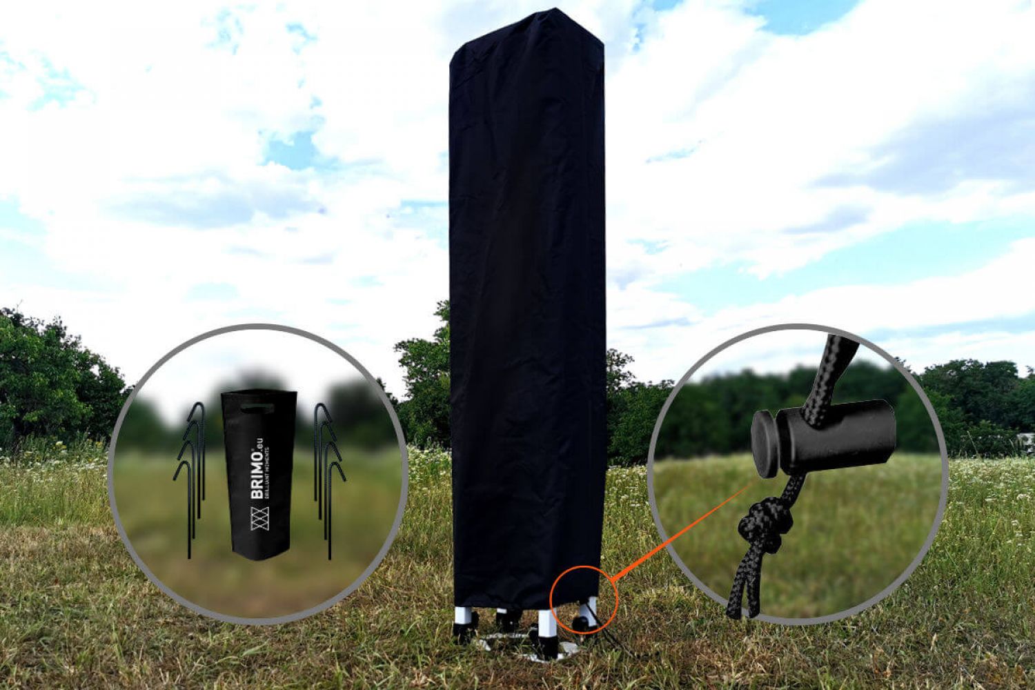 Reklaminė palapinė puikiai atlaiko oro sąlygas. Su 40 km/h vėjo jėga jis tvirtai stovi vietoje. Palapinę reikia tvirtinti. Inkaravimą galite pritvirtinti kaiščiais, kurie yra pakuotėje. Tuo atveju, jei palapinė bus naudojama ant betoninės dangos, kurioje nėra galimybės įkalti kaiščių iš mūsų pasiūlymo, galite pasirinkti tvirtinimo plienines plokštes arba smėlio maišus.