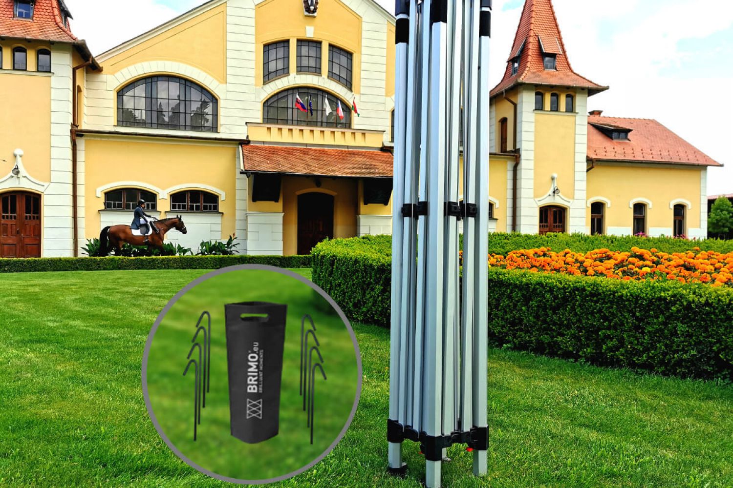 - Atsparumas vėjui: Exclusive aliuminio modelis atlaiko vėją iki 60 km/h. Kojos turi paruoštas skyles tvirtam inkaravimui (tvirtinimui). Tvirtinimo kuoliukus gausite kartu su palapine visiškai nemokamai jūsų maksimaliam saugumui.