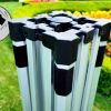 Surenkama palapinė išskleidžiama paprastai, o tai įvertinsite, jei turite mažai laiko ir skubate iki atidarymo pradžios. Aliuminio komponentai yra itin tvirti, kaip ir jungiamieji elementai. Kiekviena dalis yra sujungta varžtais, o tai didelis privalumas – pažeidimo atveju galite lengvai patys pasikeisti sugadintą detalę.