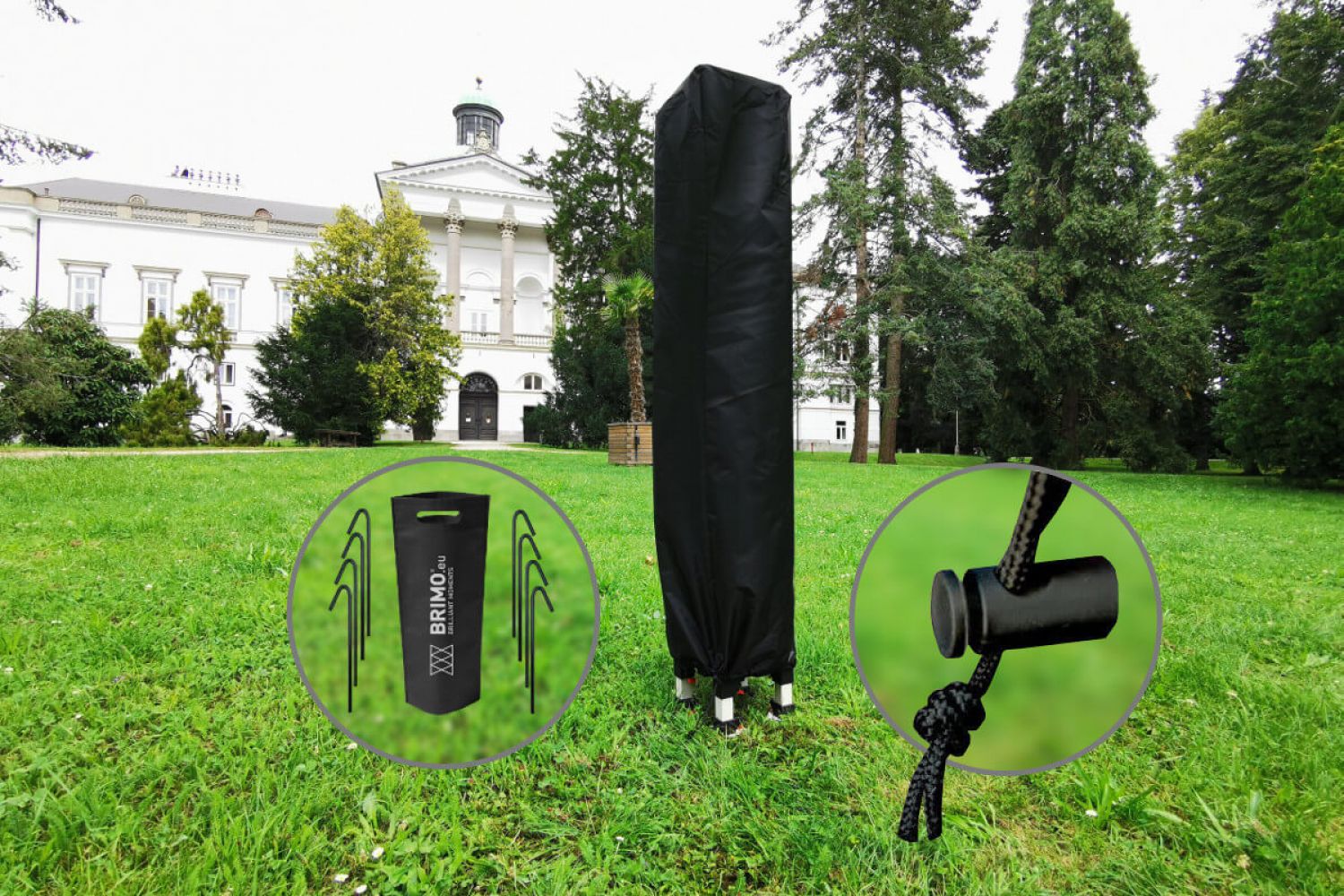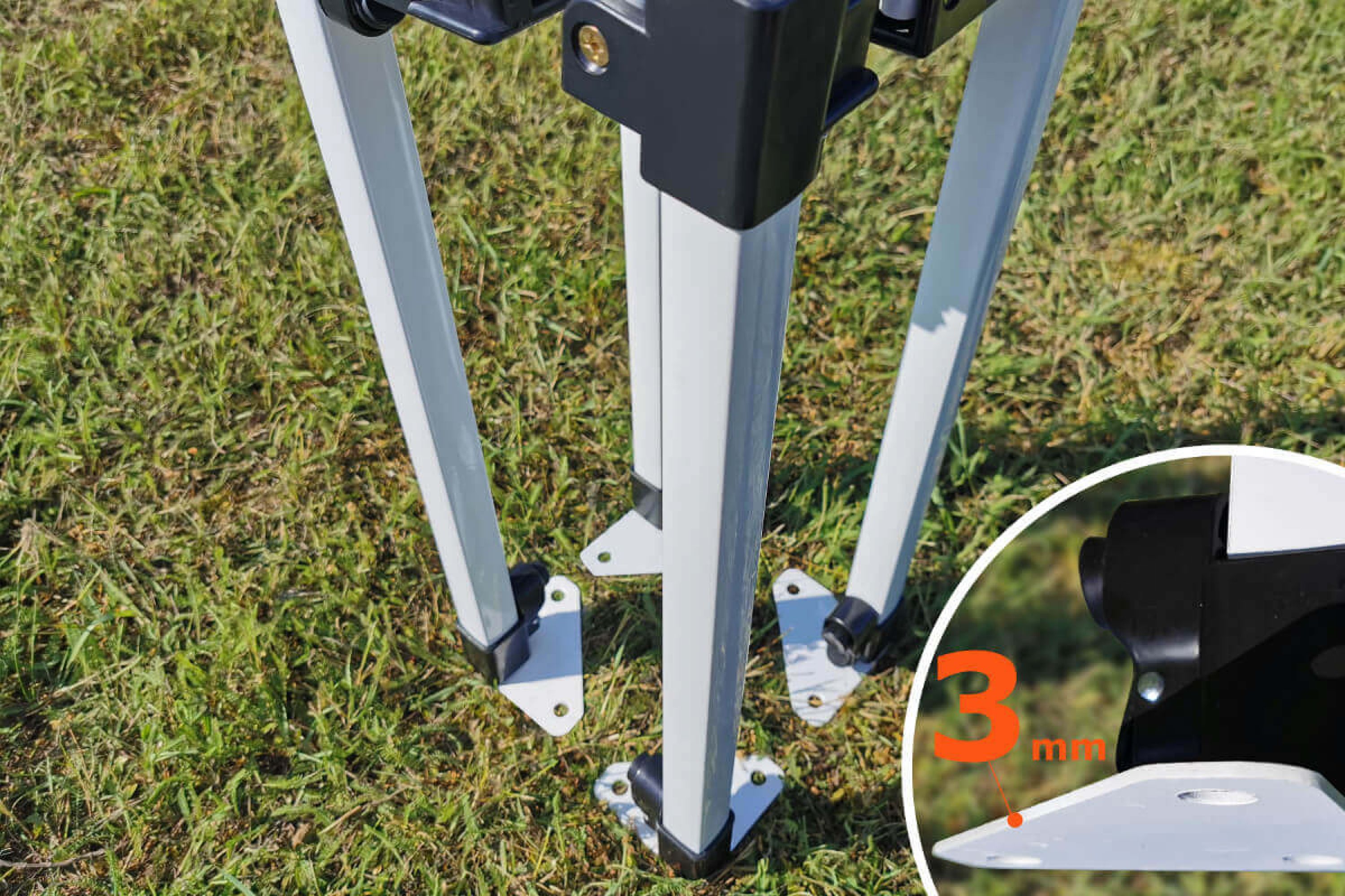 - Atsparumas vėjui: „Super“ plieno modelis atlaiko vėją iki 40 km/h. Konstrukcijos kojose yra angos tvirtam įtvirtinimui. Tvirtinimo kuoliukus gausite kartu su palapine visiškai nemokamai jūsų maksimaliam saugumui užtikrinti.